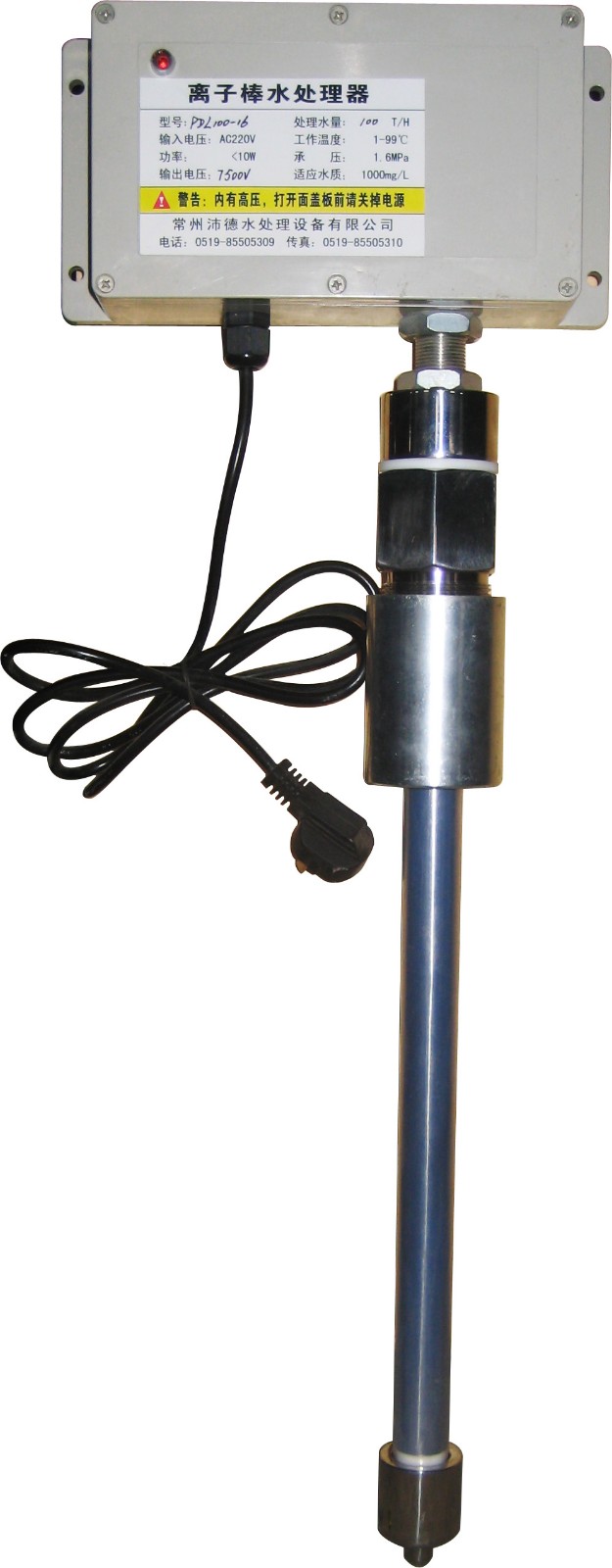 離子棒水處理器雖然電壓高,但電流小于1mA,無電介作用危及人身保護。