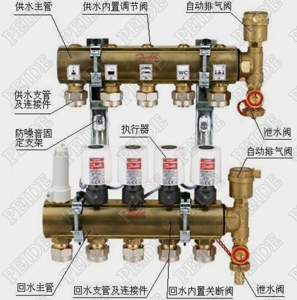 (4)分、集水器之間加電動壓差旁通閥和旁通管(管徑一般取DN50)。